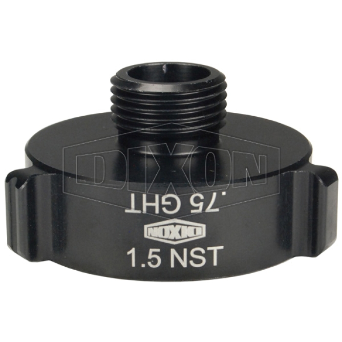 Dixon® Style N37 Rocker Lug Hydrant Adapter, Connection Type 1: NST/NH, Gender 1: Female, Connection Size 1: 1 in, Connection Type 2: GHT, Gender 2: Male, Connection Size 2: 3/4 in, Aluminum, Finish: Anodized/Hard-Coated