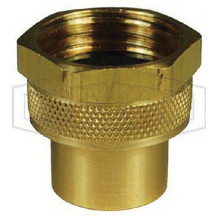 Dixon® Adapter, Connection Type 1: GHT, Gender 1: Female, Connection Size 1: 3/4 in, Thread Size 1: 3/4-11-1/2, Connection Type 2: NPTF, Gender 2: Female, Connection Size 2: 1/2 in, Thread Size 2: 1/2-14, Hex Size: 1-3/16 in, 150 psi, Brass, Dimensions: 1.32 in L x 1.88 in W, Dimension Standards: SAE J530, 34 - 195 deg F, For Use With: All Swan, Colorite, Flexon, Ames, Teknor Apex and other Designated Water and Garden Hoses