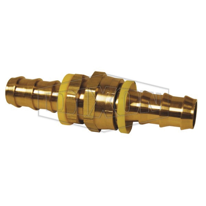 Dixon® Lok-On Garden Hose Fitting Set with Plastic Cap, Connection Type 1: Hose, Connection Size 1: 5/8 in, Connection Type 2: GHT, Connection Size 2: 3/4 in, Thread Size 2: 3/4-11-1/2, 150 psi, Brass, Dimensions: 4.23 in L, 34 - 150 deg F