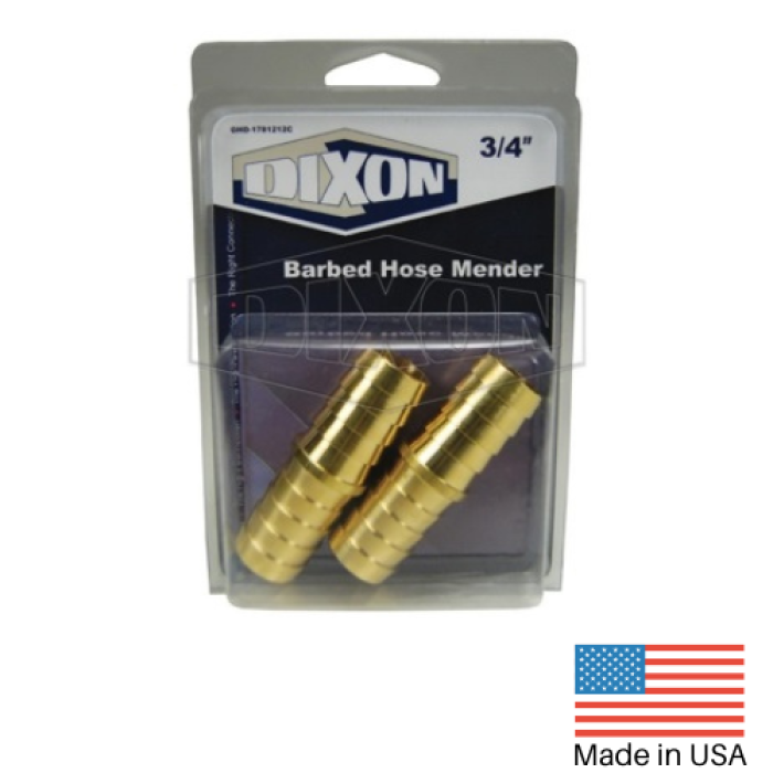 Dixon® Hose Coupling with Hex Nut, Connection Type 1: GHT, Connection Size 1: 3/4 in, Thread Size 1: 3/4-11-1/2, Connection Type 2: Hose Stem, Connection Size 2: 3/4 in, Hex Size: 1-1/16 in, Brass, Dimensions: 1.63 in L