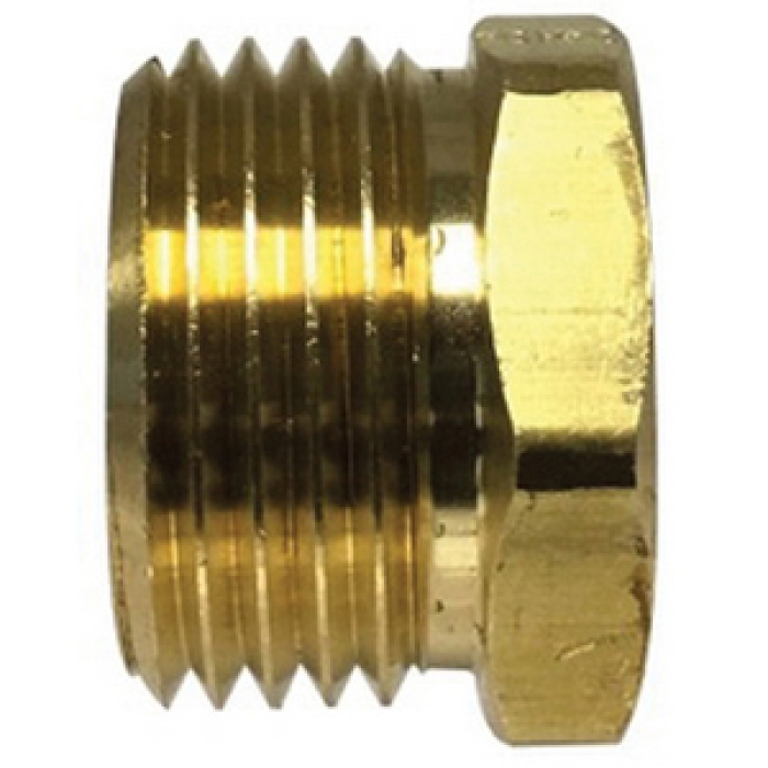 Midland Metals Rigid Adapter, Connection Type 1: GHT, Gender 1: Male, Connection Size 1: 3/4 in, Connection Type 2: NPTF, Gender 2: Female, Connection Size 2: 1/2 in, Hex Size: 1.06 in, 75 psi, Brass, Dimensions: 0.81 in L, 35 - 100 deg F