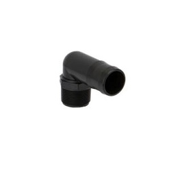 BANJO® 90 deg Elbow, Fitting Type: 90 deg Elbow, Connection Size 1: 3/4 in, Connection Type 1: Hose Barbed, Connection Size 2: 1 in, Connection Type 2: MNPT, Material Construction: Glass Reinforced Polypropylene, Black, 1-11-1/2 Thread, 1-3/8 in Hex, Maximum Operating Pressure: 300 psi, -20 to 150 deg F Operating