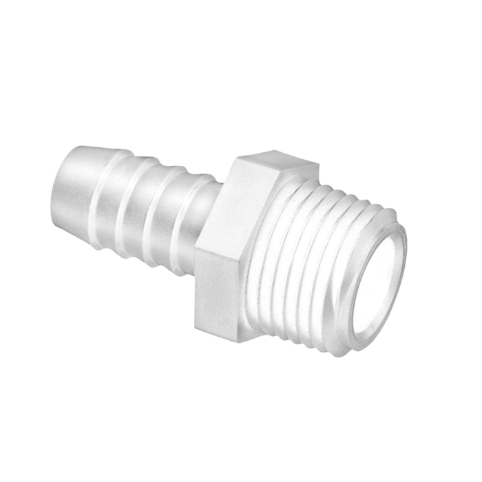Bee Valve Straight Adapter, Connection Type 1: NPT, Gender 1: Male, Connection Size 1: 3/4 in, Thread Size 1: 3/4-14, Connection Type 2: Hose Barb, Connection Size 2: 3/4 in, Nylon