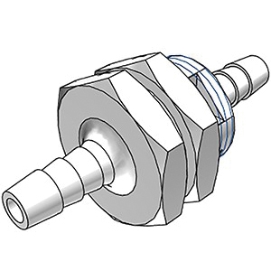 CPC Panel-Mount Union, Connection Type 1: Hose Barb, Connection Size 1: 1/8 in, Connection Type 2: Hose Barb, Connection Size 2: 1/8 in, Acetal, Finish: Natural, White