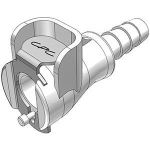 CPC Valved In-Line Coupling Body, Connection Type 1: Hose Barb, Connection Size 1: 1/4 in, 120 psi, Acetal, Finish: Natural, White, -40 to 180 deg F