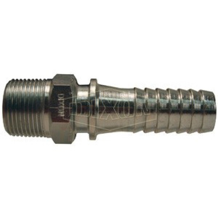 Dixon® Hydraulic Hose Stem, Connection Type 1: Hose, Connection Size 1: 1 in, Connection Type 2: NPTF, Gender 2: Male, Connection Size 2: 1 in, Hex Size: 1-3/8 in, Steel, Finish: Plated, Dimensions: 4-19/32 in L