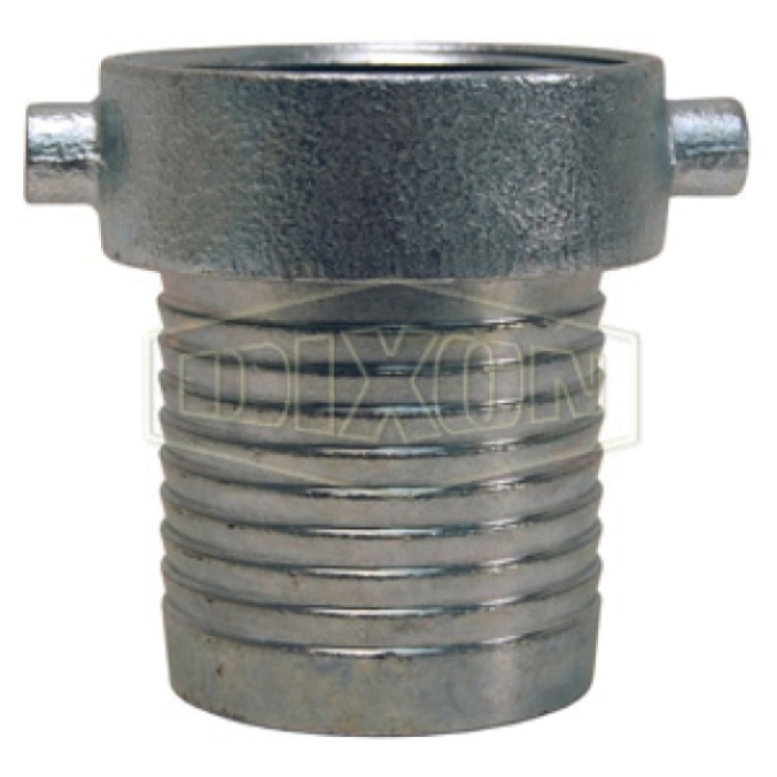 Dixon® King™ Short Shank Suction Coupling, Connection Type 1: Hose, Connection Size 1: 3 in, Connection Type 2: NPSM, Gender 2: Female, Connection Size 2: 3 in, Steel, Finish: Plated, Dimensions: 5-3/8 in Dia x 4-13/16 in L