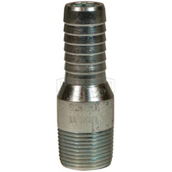 Dixon® King™ Global Combination Nipple, Connection Type 1: Hose Barb, Connection Size 1: 1-1/4 in, Thread Size 1: 1-1/4-11-1/2, Connection Type 2: NPT, Gender 2: Male, Connection Size 2: 1-1/4 in, Steel, Finish: Plated, 1-21/32 in Diameter, 3-15/32 in Length