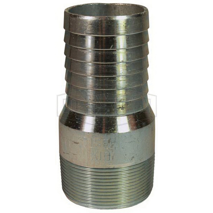 Dixon® King™ Global Combination Nipple, Connection Type 1: Hose Barb, Connection Size 1: 2-1/2 in, Thread Size 1: 2-1/2-8, Connection Type 2: NPT, Gender 2: Male, Connection Size 2: 2-1/2 in, Steel, Finish: Plated, 2-7/8 in Diameter, 5-9/16 in Length