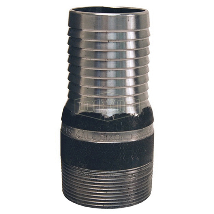 Dixon® King™ Combination Nipple with Knurled Wrench Grip, Connection Type 1: Hose Barb, Connection Size 1: 2 in, Connection Type 2: NPT, Gender 2: Male, Connection Size 2: 2 in, Steel, Finish: Unplated, 2-1/32 x 2-3/8 in Diameter, 4-11/16 in Length