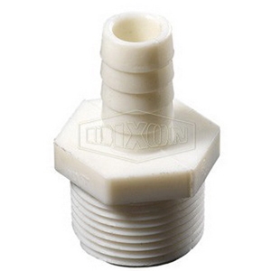Dixon® Tuff-Lite™ Short Shank Coupling, Connection Type 1: Hose Stem, Connection Size 1: 3/4 in, Connection Type 2: GHT, Gender 2: Male, Connection Size 2: 3/4 in, Hex Size: 1-1/8 in, Nylon, White, For Use With: TCF76 Tuff-Lite™ Short Shank Female Coupling, Dimensions: 1-27/32 in L