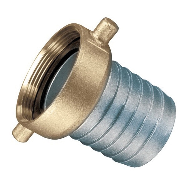 Kuriyama Pin Lug Coupling with Brass Swivel Nut, Connection Type 1: Hose Stem, Connection Size 1: 2 in, Connection Type 2: NPSM, Gender 2: Female, Connection Size 2: 2 in, 75 psi, Aluminum, 70 deg F