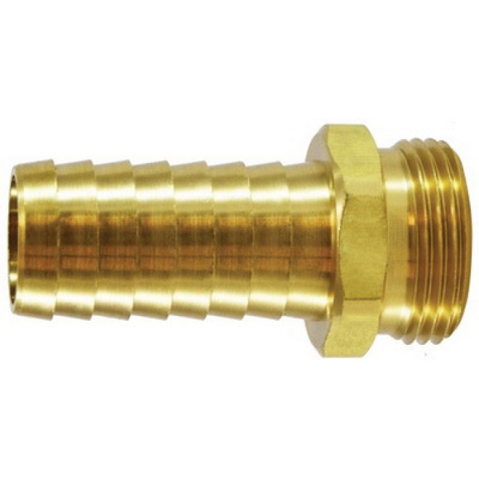 Midland Metals Long Shank Coupling, Connection Type 1: Hose Barb, Connection Size 1: 1 in, Connection Type 2: NPSM, Gender 2: Male, Connection Size 2: 1 in, Hex Size: 1.3 in, Brass, Dimensions: 2.32 in L, 350 - 100 deg F at 75 psi