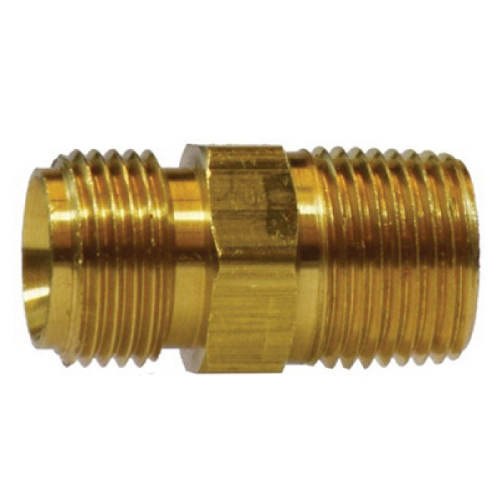 Midland Metals Ball Seat Adapter, Connection Type 1: NPSM, Connection Size 1: 1/2 in, Connection Type 2: NPTF, Gender 2: Male, Connection Size 2: 1/2 in, Hex Size: 0.87 in, 150 psi, Brass, For Use With: Hose Clamp, Similar Type Clamp or a Crimped Ferrule, Dimensions: 1.53 in L, -40 to 160 deg F