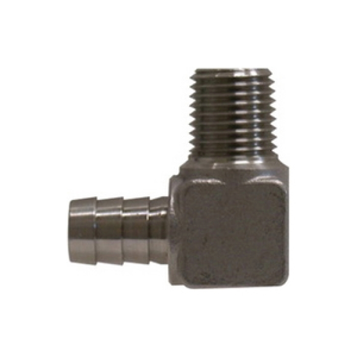 Midland Metals 90 deg Elbow, Connection Type 1: Hose Barb, Connection Size 1: 1/2 in, Connection Type 2: NPT, Gender 2: Male, Connection Size 2: 1/2 in, 316 Stainless Steel