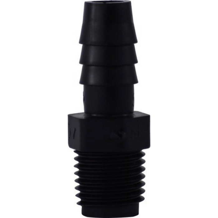 Midland Metals Adapter, Connection Type 1: Hose Barb, Connection Size 1: 1/2 in, Connection Type 2: NPT, Gender 2: Male, Connection Size 2: 1/4 in, 125 psi, Polyethylene, Black, -65 to 190 deg F