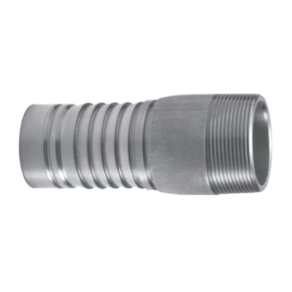 PT Coupling TFC50 Body External Crimp System, TMC50 Series, Connection Type 1: NPT, Gender 1: Male, Connection Size 1: 4 in, Connection Type 2: Barb, Connection Size 2: 4 in, 500 psi, Stainless Steel
