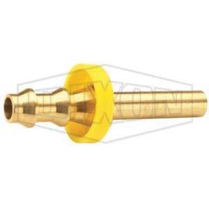 Dixon® Rigid Push-On Hose Barb with Plastic Cap, Connection Type 1: Hose Barb, Connection Size 1: 1/4 in, Connection Type 2: Tube, Connection Size 2: 1/4 in, 350 psi, Brass, Dimensions: 1.88 in L, -40 to 150 deg F