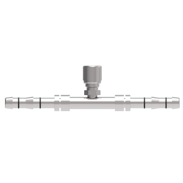 Aeroquip® E-Z Clip System™ Straight Splicer with Switch Port, FJ3171 Series, Connection Type 1: Hose, Connection Size 1: 3/8 in, Connection Type 2: Hose, Connection Size 2: 3/8 in, Carbon Steel, Finish: Dura-Kote, For Use With: GH134 Series Hoses, Dimensions: 5.41 in L x 0.38 in W x 0.38 in H