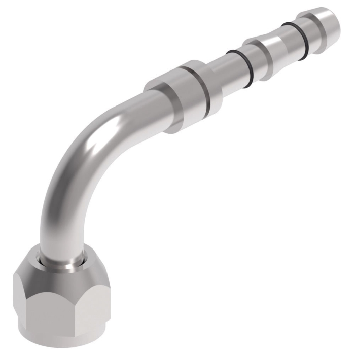 Aeroquip® E-Z Clip System™ 90 deg Elbow, FJ3288 Series, Connection Type 1: Hose, Connection Size 1: 5/8 in, Connection Type 2: O-Ring Long Pilot, Gender 2: Female, Connection Size 2: 1/2 in, Thread Size 2: 3/4-16, Hex Size: 7/8 in, Carbon Steel, Finish: Zinc Clear Trivalent Chromate, For Use With: GH134 Series Hoses, Dimensions: 3.78 in L x 0.875 in W x 1.62 in H