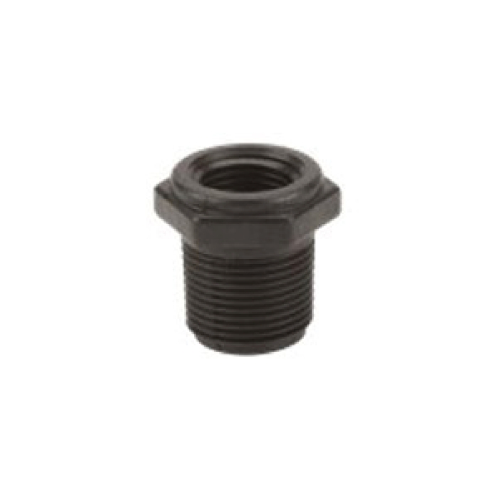 Banjo® Bushing, Connection Type 1: NPT, Gender 1: Male, Connection Size 1: 3/4 in, Connection Type 2: NPT, Gender 2: Female, Connection Size 2: 1/2 in, SCH 80, 300 psi, Glass Reinforced Polypropylene, Black, Dimensions: 1-13/32 in L, -20 to 150 deg F