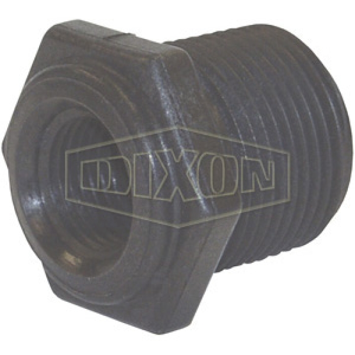 Dixon® Reducer Bushing, Connection Type 1: NPT, Gender 1: Male, Connection Size 1: 1 in, Thread Size 1: 1-11-1/2, Connection Type 2: NPT, Gender 2: Female, Connection Size 2: 3/4 in, Thread Size 2: 3/4-14, SCH 80, Hex Size: 1-9/16 in, Polypropylene