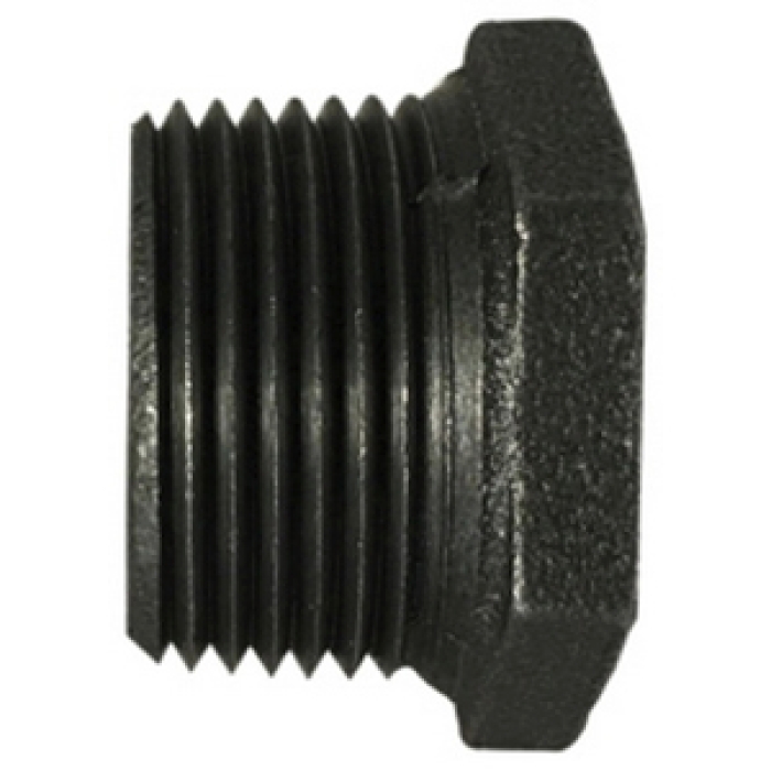 Midland Metals Hex Bushing, Connection Type 1: NPT, Gender 1: Male, Connection Size 1: 2 in, Connection Type 2: NPT, Gender 2: Female, Connection Size 2: 1/4 in, Hex Size: 1.12 in, 150 lb, Malleable Iron, Black, Dimensions: 1.29 in L, Dimension Standards: ANSI B16.3, ANSI B2.1 or BS 21, ASME B1.20.1, -20 to 350 deg F
