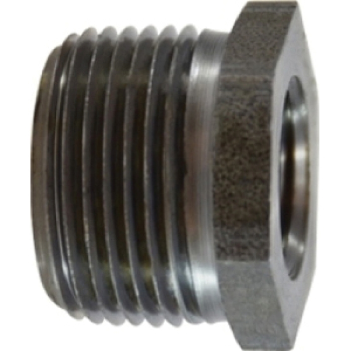 Midland Metals Hex Bushing, Connection Type 1: NPTF, Gender 1: Male, Connection Size 1: 1 in, Connection Type 2: NPTF, Gender 2: Female, Connection Size 2: 3/4 in, Hex Size: 1.31 in, 150/300 psi, Steel, Finish: Black, Dimensions: 1 in L, Dimension Standards: ASME B16.14
