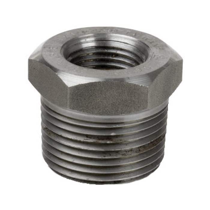 Smith-Cooper® Hex Bushing, Series: 42HB3, Connection Type 1: NPT, Connection Size 1: 2 in, Connection Type 2: NPT, Connection Size 2: 1-1/4 in, Hex Size: 2-1/2 in, 3000 psi, Forged Carbon Steel, Dimensions: 1.22 in L x 2.5 in W