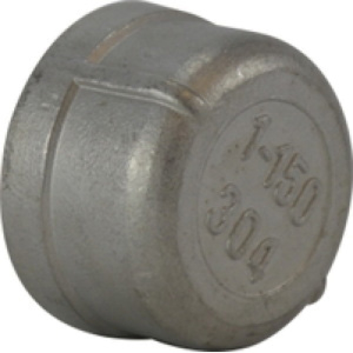 Midland Metals Cap, Connection Type 1: NPT, Gender 1: Female, Connection Size 1: 1 in, SCH 40, 150 lb, 304 Stainless Steel, Dimension Standards: ASME B1.20.1