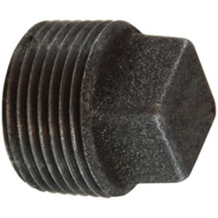 Midland Metals Cored Square Head Plug, Connection Type 1: NPT, Connection Size 1: 1/2 in, 150 lb, Malleable Iron, Black, Dimensions: 0.96 in L x 0.56 in W, Dimension Standards: ANSI B16.3, ANSI B2.1 or BS 21, ASME B1.20.1, -20 to 350 deg F