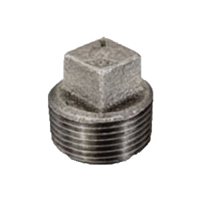 Smith-Cooper® Square Head Plug, Series: 33SP1, Connection Type 1: NPT, Gender 1: Male, Connection Size 1: 1/2 in, 150 psi, Malleable Iron, Black, Dimensions: 1 in L