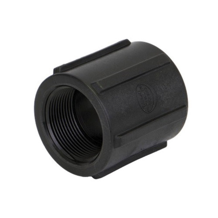Banjo® Pipe Coupling, Connection Type 1: NPT, Gender 1: Female, Connection Size 1: 1-1/2 in, Connection Type 2: NPT, Gender 2: Female, Connection Size 2: 1-1/2 in, 300 psi, SCH 80, Glass Reinforced Polypropylene, Black, Dimensions: 2-3/4 in L, -20 to 150 deg F