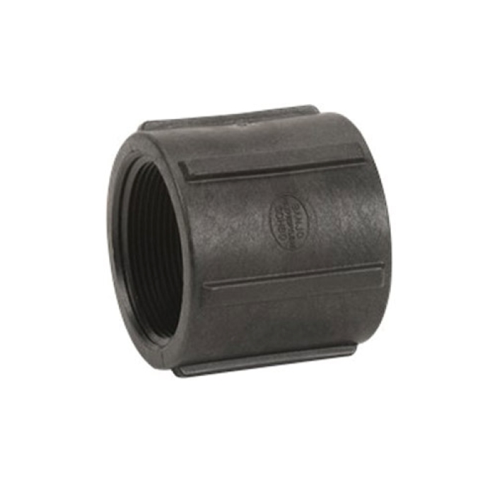 Banjo® Pipe Coupling, Connection Type 1: NPT, Gender 1: Female, Connection Size 1: 2 in, Connection Type 2: NPT, Gender 2: Female, Connection Size 2: 2 in, 300 psi, SCH 80, Glass Reinforced Polypropylene, Black, Dimensions: 2-3/4 in L, -20 to 150 deg F