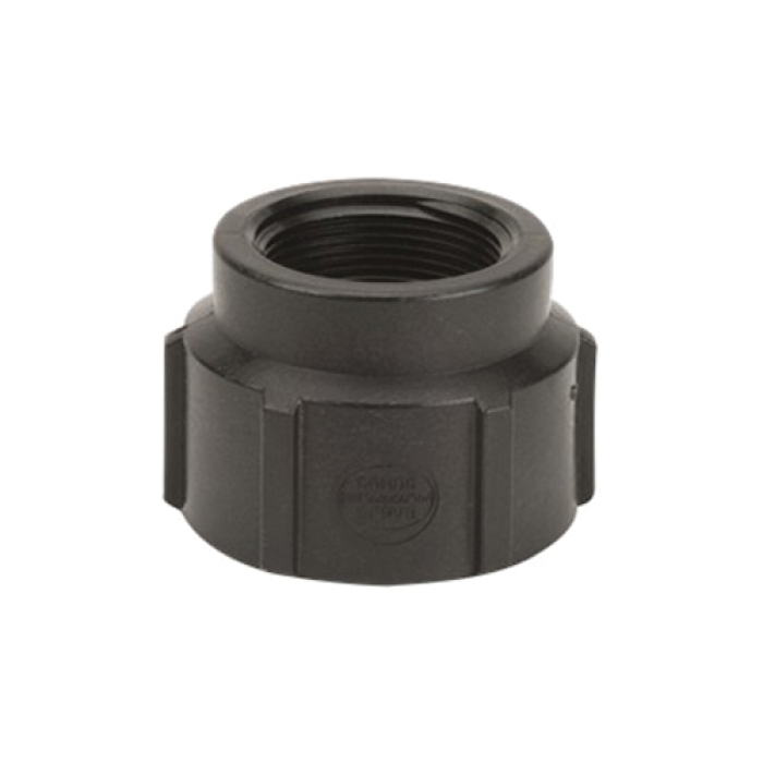 BANJO® Coupling, Coupling Fitting, 2 in Connection Size 1, FNPT Connection Type 1, 1-1/2 in Connection Size 2, FNPT Connection Type 2, FNPT|FNPT Connection, Polypropylene, Glass Reinforced Polypropylene Material Construction, Black, 2-11-1/2 x 1-1/2-11-1/2 Thread, 300 psi, 2.22 in L, -20 to 150 deg F, SCH 80 Schedule Rating