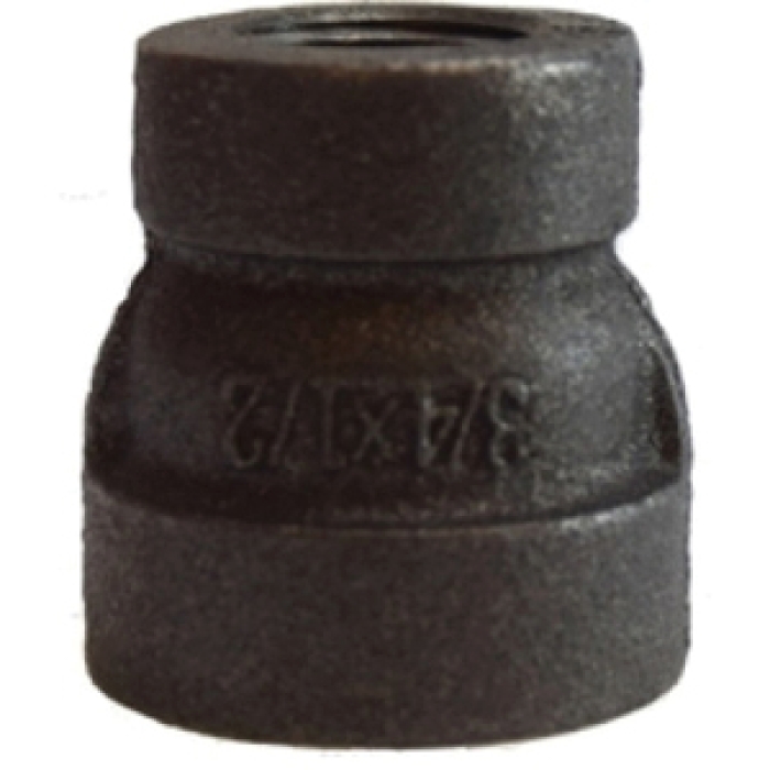 Midland Metals Extra Heavy Reducing Coupling, Connection Type 1: NPT, Gender 1: Female, Connection Size 1: 3/4 in, Connection Type 2: NPT, Gender 2: Female, Connection Size 2: 3/8 in, 300 lb, Malleable Iron, Finish: Galvanized, Black