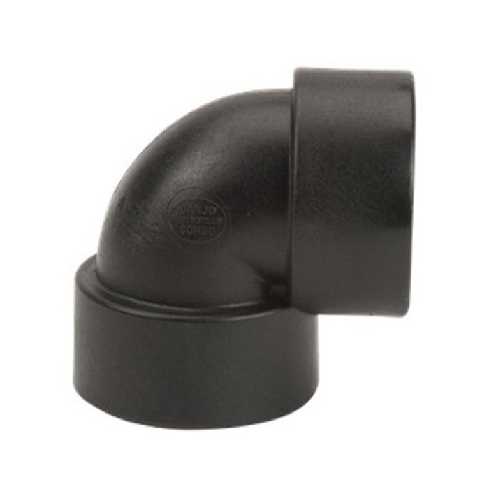 Banjo® 90 deg Elbow, Connection Type 1: NPT, Gender 1: Female, Connection Size 1: 2 in, Connection Type 2: NPT, Gender 2: Female, Connection Size 2: 2 in, 300 psi, SCH 80, Glass Reinforced Polypropylene, Black, Dimensions: 4 in H, -20 to 150 deg F