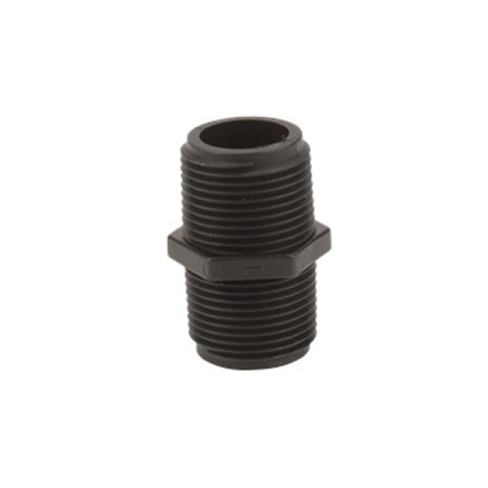 Banjo® Short Hex Nipple, Connection Type 1: NPT, Gender 1: Male, Connection Size 1: 3/4 in, Connection Type 2: NPT, Gender 2: Male, Connection Size 2: 3/4 in, SCH 80, 300 psi, Glass Reinforced Polypropylene, Black, 1.05 in Diameter, 1-13/16 in Length, -20 to 150 deg F