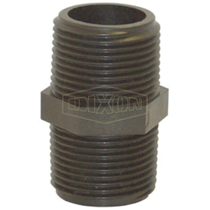 Dixon® Hex Pipe Nipple, Connection Type 1: NPT, Gender 1: Male, Connection Size 1: 1 in, Thread Size 1: 1-11-1/2, Connection Type 2: NPT, Gender 2: Male, Connection Size 2: 1 in, Thread Size 2: 1-11-1/2, SCH 80, Polypropylene, 2-1/4 in Length, Hex Size: 1-3/8 in