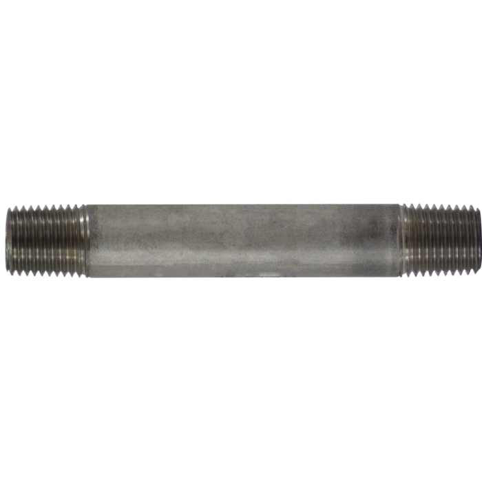 Midland Metals Welded Close Nipple, Connection Type 1: NPT, Gender 1: Male, Connection Size 1: 1/4 in, Thread Size 1: 1/4-18, Connection Type 2: NPT, Gender 2: Male, Connection Size 2: 1/4 in, Thread Size 2: 1/4-18, SCH 40, 304 Stainless Steel, 7/8 in Length, Dimension Standards: ANSI B1.20.1