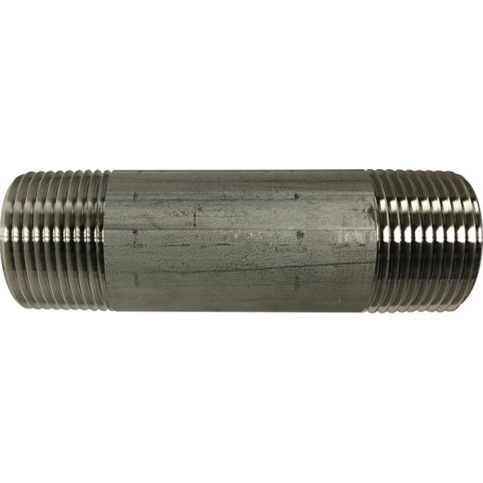 Midland Metals Welded Nipple, Connection Type 1: NPT, Gender 1: Male, Connection Size 1: 1 in, Thread Size 1: 1-11-1/2, Connection Type 2: NPT, Gender 2: Male, Connection Size 2: 1 in, Thread Size 2: 1-11-1/2, SCH 40, 304 Stainless Steel, 2-1/2 in Length, Dimension Standards: ANSI B1.20.1