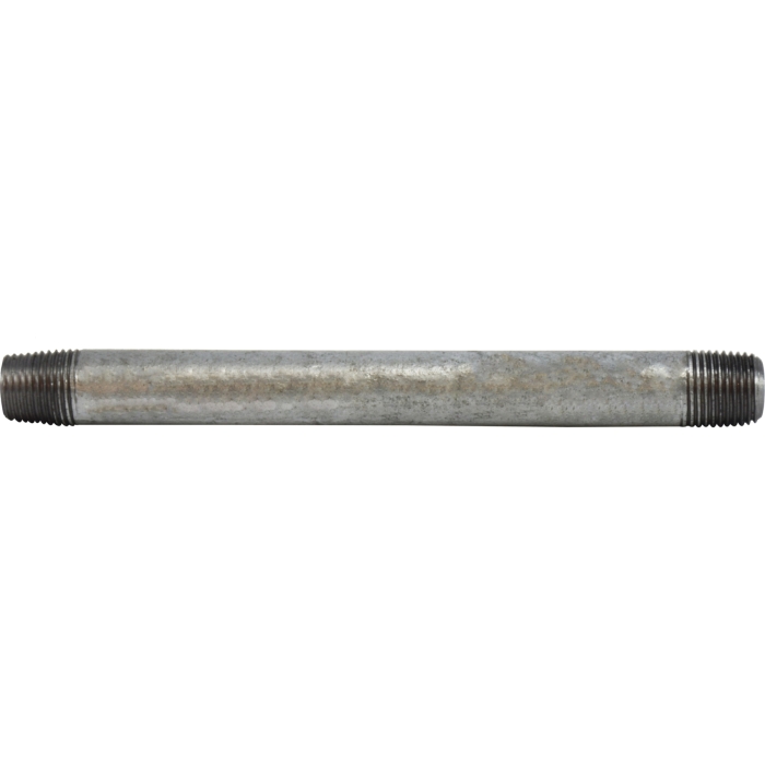 Midland Metals Grade B Welded Nipple, Connection Type 1: NPT, Gender 1: Male, Connection Size 1: 1/8 in, Thread Size 1: 1/8-27, Connection Type 2: NPT, Gender 2: Male, Connection Size 2: 1/8 in, Thread Size 2: 1/8-27, SCH 40, 0.068 in Thick Wall, 700 psi, Steel, Finish: Galvanized, 4 in Length, 0.39 in Length Thread, Dimension Standards: ANSI B1.20.1, -200 to 150 deg C