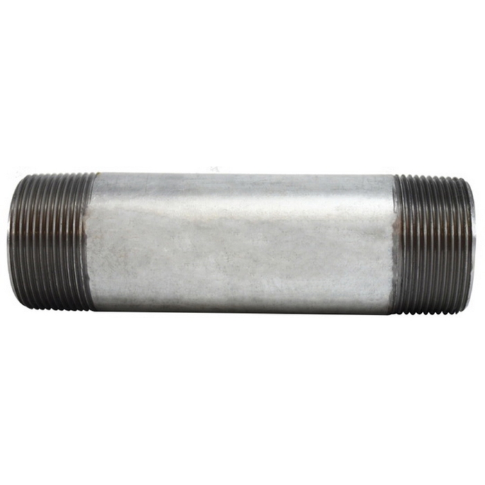 Midland Metals Grade B Welded Nipple, Connection Type 1: NPT, Gender 1: Male, Connection Size 1: 1-1/2 in, Connection Type 2: NPT, Gender 2: Male, Connection Size 2: 1-1/2 in, SCH 40, 0.145 in Thick Wall, 1300 psi, Steel, Finish: Galvanized, 5 in Length, 1.03 in Length Thread, Dimension Standards: ANSI B1.20.1, -200 to 150 deg C