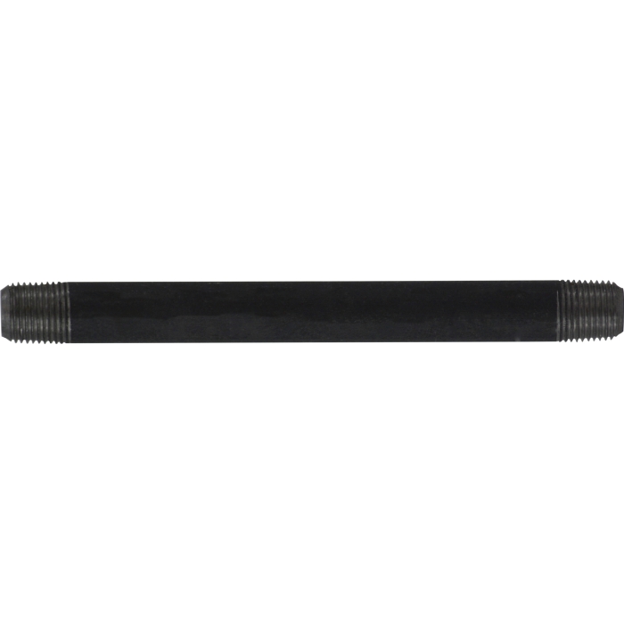 Midland Metals Grade B Welded Close Nipple, Connection Type 1: NPT, Gender 1: Male, Connection Size 1: 1/8 in, Thread Size 1: 1/8-27, Connection Type 2: NPT, Gender 2: Male, Connection Size 2: 1/8 in, Thread Size 2: 1/8-27, SCH 40, 0.068 in Thick Wall, 700 psi, Steel, Black, 3/4 in Length, 0.39 in Length Thread, Dimension Standards: ANSI B1.20.1, -200 to 150 deg C