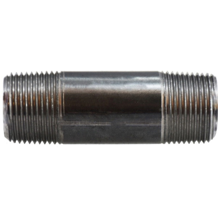 Midland Metals Grade B Welded Nipple, Connection Type 1: NPT, Gender 1: Male, Connection Size 1: 3/4 in, Connection Type 2: NPT, Gender 2: Male, Connection Size 2: 3/4 in, SCH 40, 0.113 in Thick Wall, 700 psi, Steel, Black, 3 in Length, 0.79 in Length Thread, Dimension Standards: ANSI B1.20.1, -200 to 150 deg C
