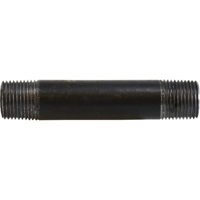 Midland Metals Seamless Nipple, Connection Type 1: NPT, Gender 1: Male, Connection Size 1: 1 in, Thread Size 1: 1-11-1/2, Connection Type 2: NPT, Gender 2: Male, Connection Size 2: 1 in, Thread Size 2: 1-11-1/2, SCH 80, 0.179 in Thick Wall, 850 psi, Steel, Black, 1 in Diameter, 2-1/2 in Length, 0.98 in Length Thread, Dimension Standards: ANSI B1.20.1, ANSI B36.1