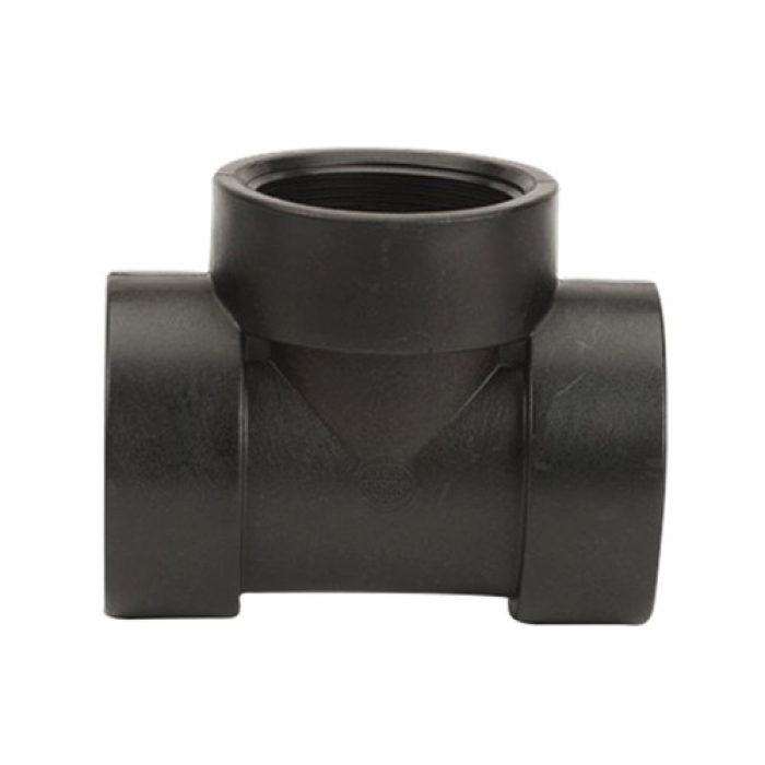 Banjo® Pipe Tee, Connection Type 1: NPT, Gender 1: Female, Connection Size 1: 3 in, Connection Type 2: NPT, Gender 2: Female, Connection Size 2: 3 in, Connection Type 3: NPT, Gender 3: Female, Connection Size 3: 3 in, SCH 80, 225 psi, Glass Reinforced Polypropylene, Black, Dimensions: 6-7/8 in L, -20 to 150 deg F
