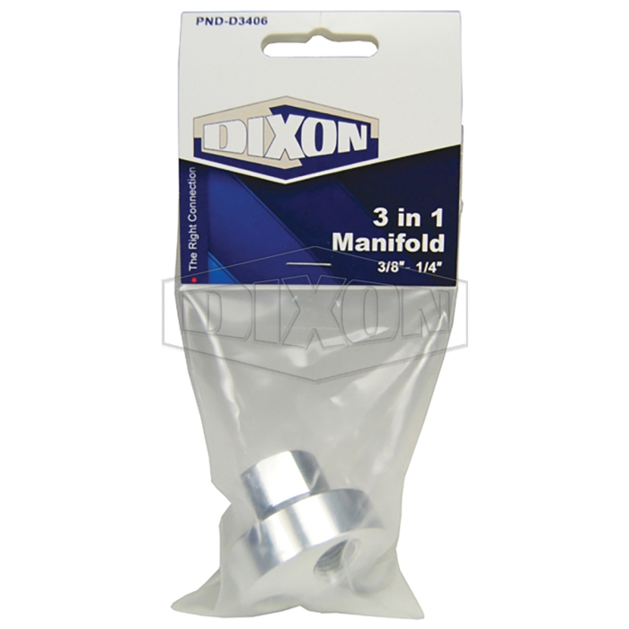 Dixon® 3-in-1 Manifold, 1-Inlets, 3-Outlets, Inlet Size: 3/8 in, Outlet Size: 1/4 in, Connection Type: NPT, Aluminum