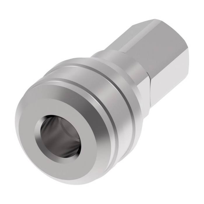 Aeroquip® Coupling, 3000 Series, Connection Type 1: Quick Disconnect, Gender 1: Female, Connection Size 1: 1/4 in, Connection Type 2: Hose, Connection Size 2: 3/8 in ID x 11/16 in OD, Hex Size: 0.81 in, 2000 psi, Brass, Dimensions: 2.84 in L x 1.19 in W x 1.19 in H, Dimension Standards: ISO 6150 Series B, -40 to 250 deg F