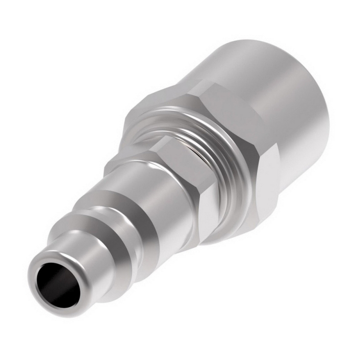 Aeroquip® Coupling Plug, 3000 Series, Connection Type 1: Quick Disconnect, Gender 1: Male, Connection Size 1: 1/4 in, Connection Type 2: Hose Barb, Connection Size 2: 1/4 in ID x 1/2 in OD, Hex Size: 0.63 in, 2000 psi, Carbon Steel, Finish: Zinc-Plated, Dimensions: 2.31 in L x 0.7 in W x 0.7 in H, Dimension Standards: ISO 6150 Series B, -40 to 250 deg F
